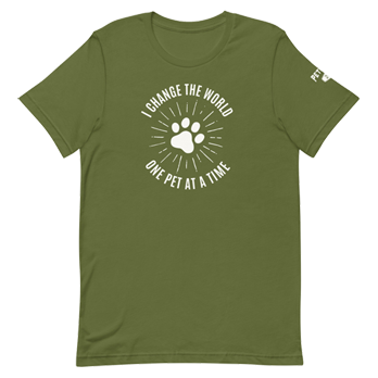 Wear your message with this powerful statement, "I change the world one pet at a time." Don’t forget to have your business cards ready to hand out with your contact info!