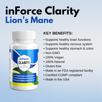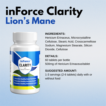 inForce Clarity uses the most potent strain of Hericium erinaceus, which is more commonly known as Lion’s Mane in the United States. Hericium erinaceus has been used for overall wellness support in eastern cultures for centuries. Furthermore, western style clinical studies have shown that H. erinaceus has several beneficial properties. Therefore, after years of research, inForce Clarity derives its extraction process to create the best and most potent product highlighting the following benefits.